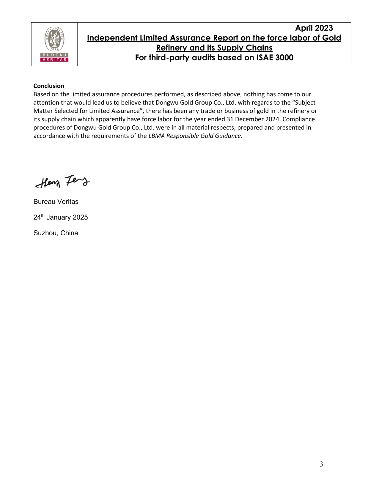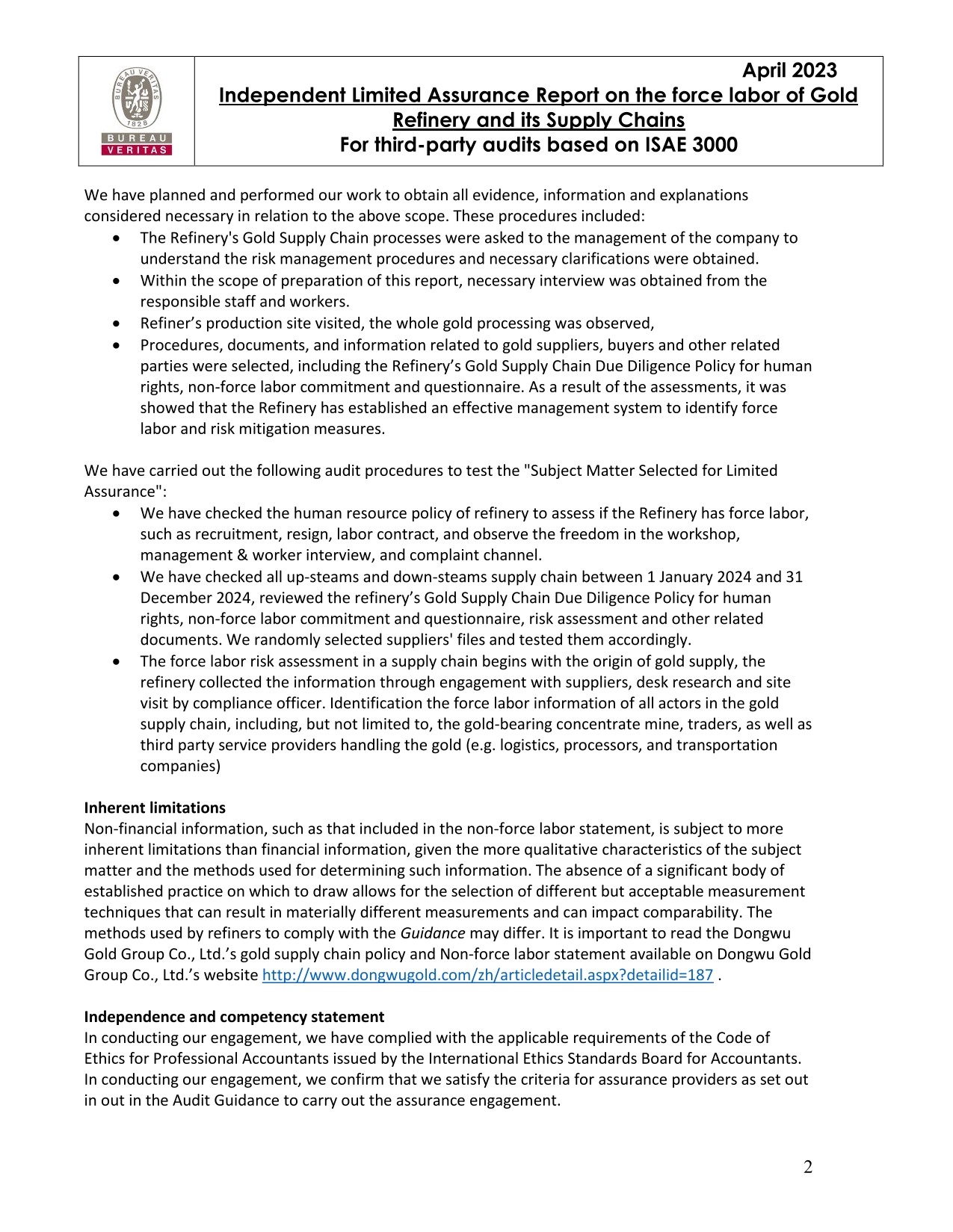Additional Limited Assurance Report_Gold_Dongwu Gold Group Co., Ltd._China